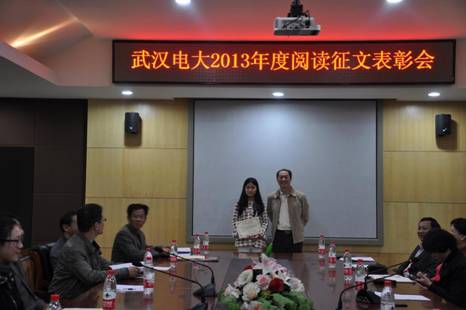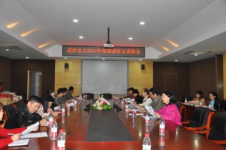 (通讯员王林琳 摄影郭勇\周娅)10月31日上午9时,武汉市广播电视大学阅读征文表彰会在我校关山校区学术交流中心召开,会议由市校郑瑛副校长主持。会议通报了我校在2013年度国家开放大学主办的“手牵手——农村青少年阅读行动”中,第三次荣获“优秀组织奖”,以及囊括众多奖项且奖项数量在全国获奖电大中名列第一的好成绩。会议还表彰了在此次征文活动中涌现出的先进集体和个人。副校长郑瑛,市校党政办、组织人事处、科研处、团委、图书馆的领导,各电大分校、教学点的分管校长,分管图书馆工作的负责人,分校馆员代表及市校部分图书馆馆员出席了此次会议。