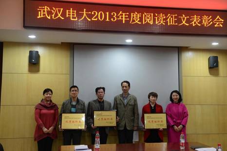 会议伊始,市校团委黄俊亮书记代表学校宣读了《关于2013年度阅读征文活动的表彰决定》。接着,与会领导为获奖的先进单位和个人颁奖并合影留念。东西湖、开放教育学院及新洲分校作为此次活动的优秀代表向与会者分享了本单位的成功经验以及获奖感悟。随后,周保银馆长总结了2013年阅读征文活动的开展情况。在2013年的阅读征文活动中,我校共获得“优秀组织奖”在内的31个奖项,其中中小学青少年组表现突出。本次征文数量再创历史新高,获奖数量在全国省级电大中名列第一,受到了中央电大的表彰。