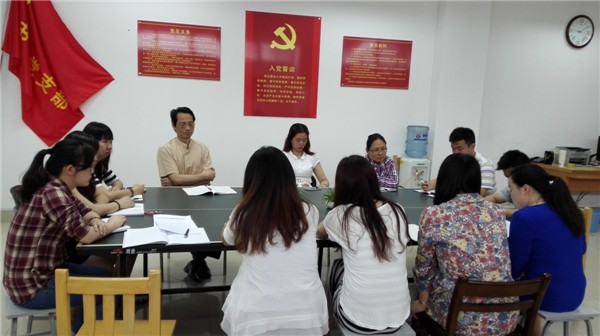 会上,首先由支部组织委员李小青向大家阐述了支部起草的2015年特色党建活动申报表。本次支部特色党建活动是响应校党委号召,积极探索党建工作的新思路,精心培育基层党建工作亮点。图书馆将以特色活动为切入点,围绕大学生思想政治教育这一立足点来创新本支部党建工作内容,通过多种途径提高服务质量,实现以书为媒介,以馆为阵地,促进大学生思想道德健康发展。