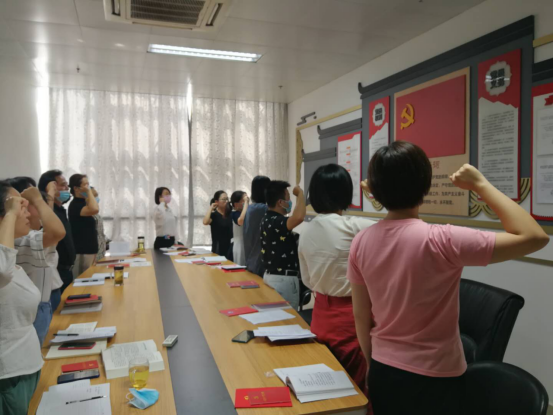 走过冬春夏,我们终于相聚一堂,大家胸佩党徽,隆重集会。活动按照学校党委通知及“5+X”模式展开,重温入党誓词、集体诵读党章、缴纳党费,开展党务公开。集中学习环节王妍、宁婉、王林琳三位同志带领大家深入学习了习近平总书记关于制止餐饮浪费的重要指示精神、《习近平谈治国理政》第三卷选篇和师德师风系列文件,在学习中牢记初心使命,强化担当意识。