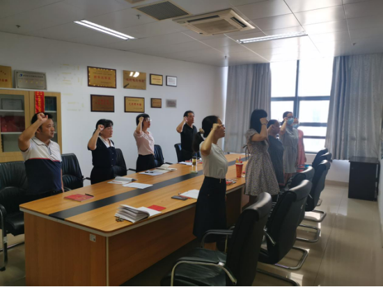 本次主题党日活动结合了党员政治生日活动内容。支部为过“政治生日”的党员张漪同志赠送了政治生日贺卡和生日寄语,张漪带领全体党员重温入党誓词,进一步坚定理想信念,不忘初心牢记使命。