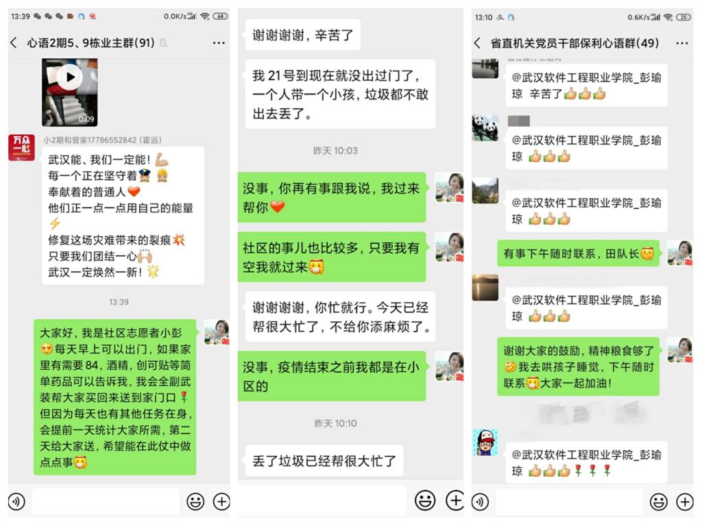 今天是图书馆党支部彭瑜琼同志对口下沉洪山区南湖保利心语社区,参加社区战“疫”工作的第7天。