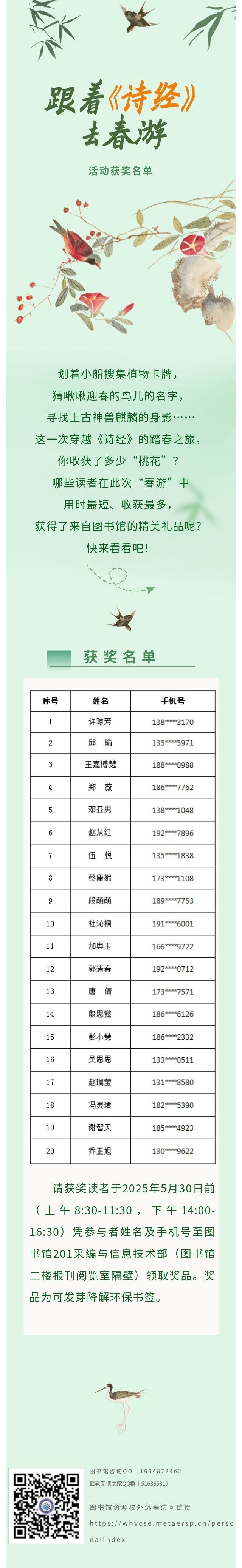 领奖通知 | “跟着《诗经》去春游”活动获奖名单来啦!
