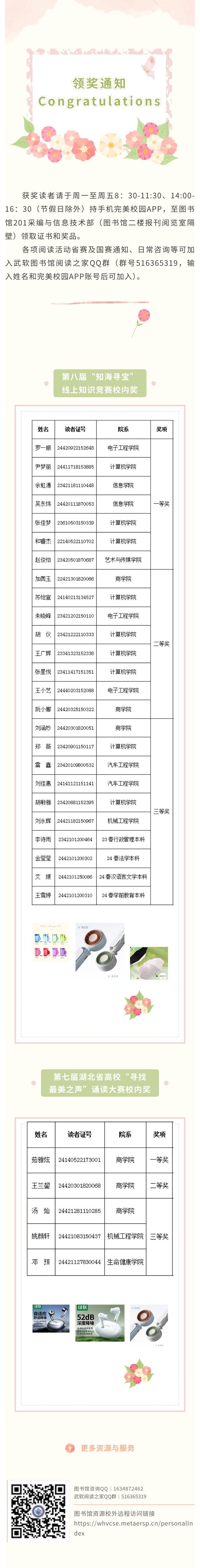 领奖通知 | 第八届“知海寻宝”线上知识竞赛、第七届湖北省高校“寻找最美之声”诵读大赛校内获奖名单