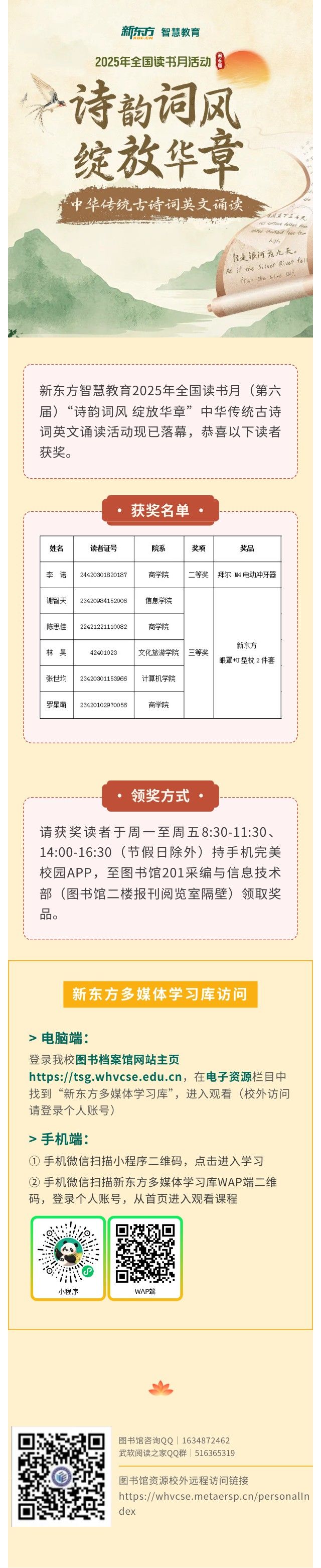 领奖通知丨新东方智慧教育2025年全国读书月(第六届)“诗韵词风 绽放华章”中华传统古诗词英文诵读活动