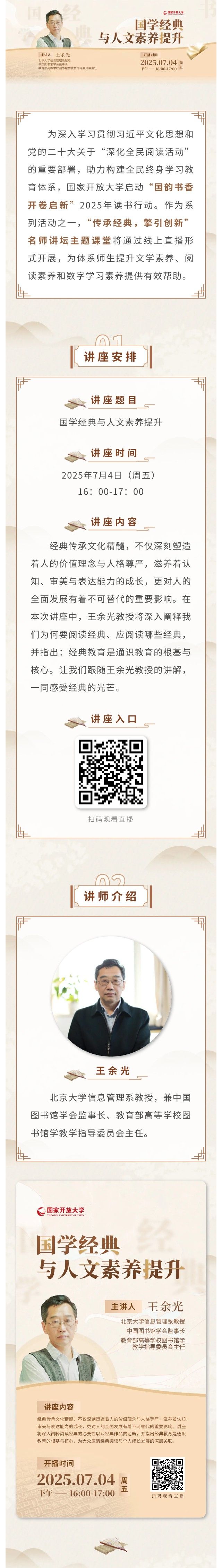 讲座预告 | 国家开放大学办学体系“传承经典,擎引创新”名师讲坛主题课堂(第二期)