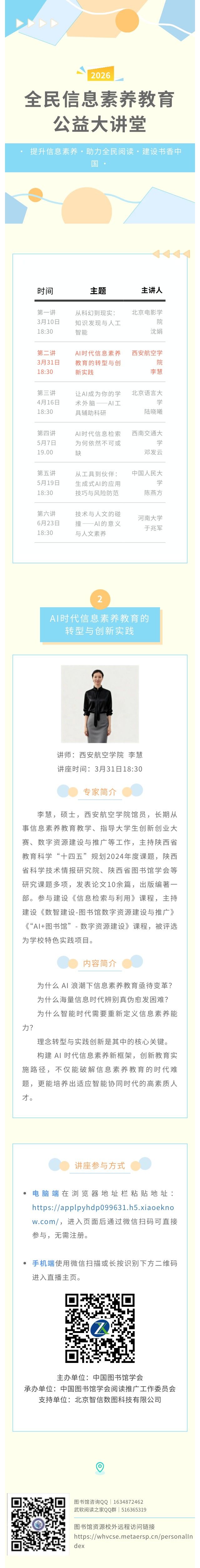 讲座全民信息素养教育公益大讲堂第七期 | 第二讲:AI时代信息素养教育的转型与创新实践