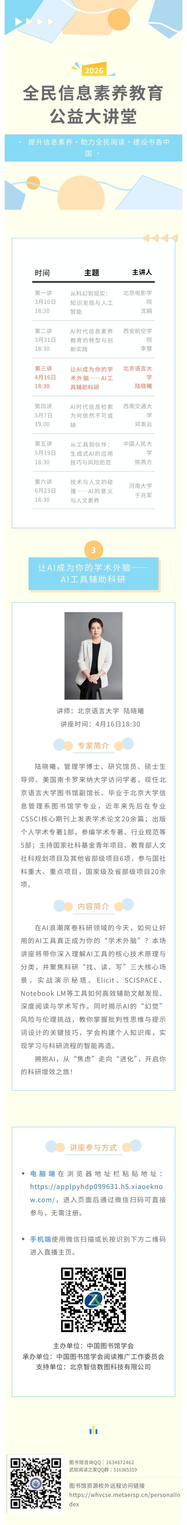 全民信息素养教育公益大讲堂第七期 | 第三讲:让AI成为你的学术外脑——AI工具辅助科研