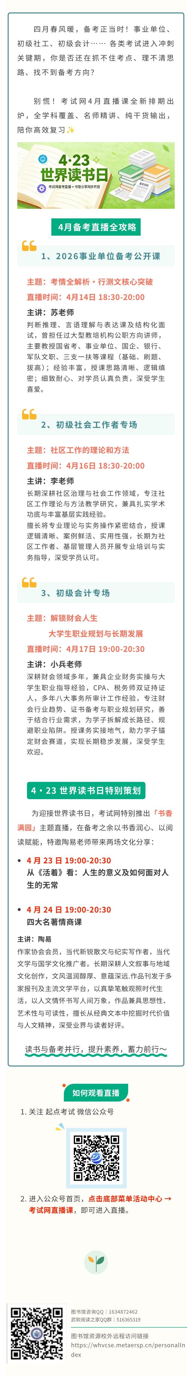 系列讲座|考试网备考直播 + 书香分享同步开启