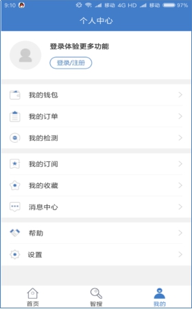 2) 打开万方数据APP,点击“我的”进入个人中心,点击“登录/注册”,登录待绑定的个人账号,若已登录可直接跳转第三步。