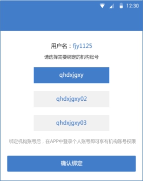 4) 选择需要绑定的机构账号,点击“确认绑定”即可。