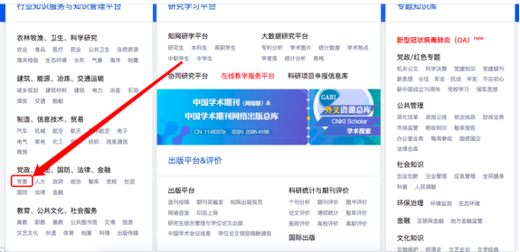 1.点击知网首页左下角“党委”,进入数据库。
