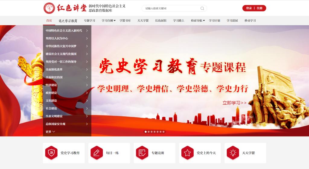“红色讲堂”以《习近平新时代中国特色社会主义思想学习纲要》为纲领,现已建设形成涵盖中华民族伟大复兴中国梦、全面依法治国、经济建设、政治建设、文化建设、社会建设、生态文明建设、总体国家安全观、国防和军队建设、祖国完全统一、人类命运共同体与大国外交、党的建设等十八大专辑完整思政知识体系的大型思政知识数据库。