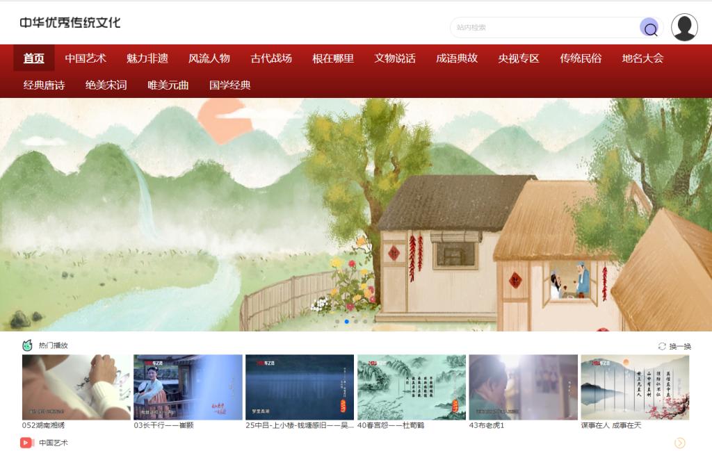 本专题库涵盖14个栏目,栏目包括中国艺术、风流人物、古代战场、根在哪里、文物说话、成语典故、魅力非遗、传统民俗、地名大会、蒙学教育、经典唐诗、绝美宋词、唯美元曲,央视专区。