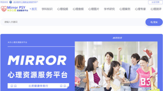 Mirror(米乐)心理资源服务平台是针对在校大学生专门研发的专业心理资源服务平台。平台收录了来源于全国上百家科研院所、医疗机构的学术和科研成果,包含视频、课程、文献资料、音频、图片等大量的资源。此外也收录了各大专业机构在长期积累的数据基础上实时更新算法的各种测试量表。包含学科知识、心理视频、心理音频、心理图片、心理案例、心理专家、趣味测试、疫情专题等模块。汇集了学科知识、视频课程、音频、图片、案例、测评等多种形式的学习资源。